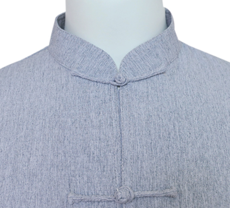 男士夏季灰色唐裝 描述:長袖 面料: 棉 65% 麻 35% 編號:nf-113