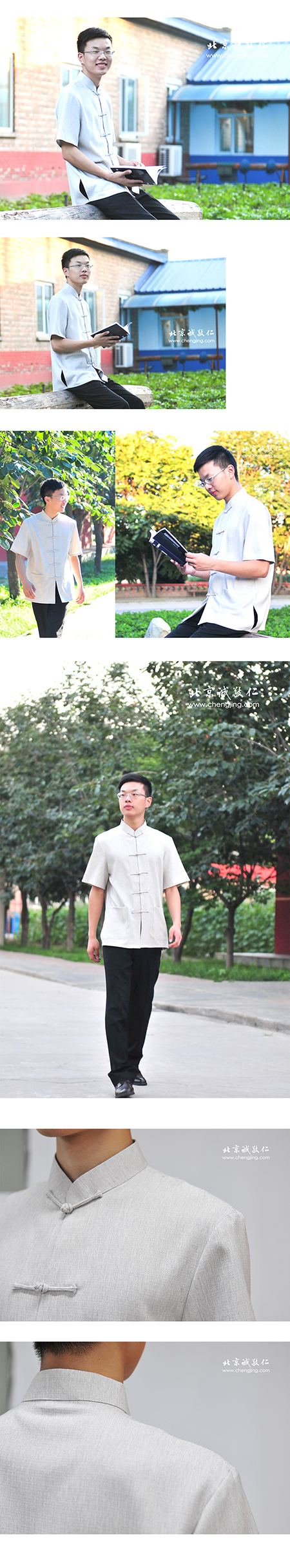 男士夏季唐裝 淺灰色短袖上衣 描述:短袖 面料: 麻 65% 棉 35% 編號:nf-126