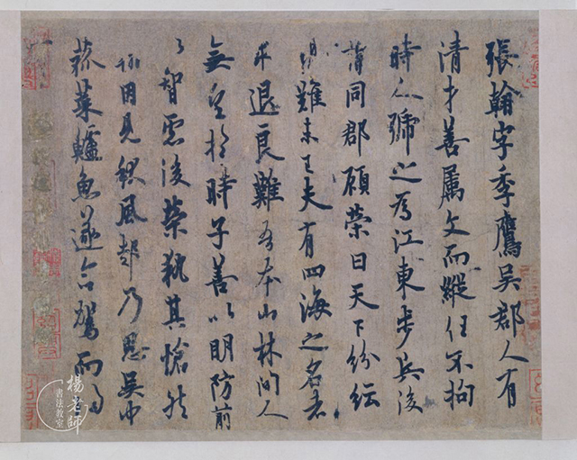 縱25.1厘米,橫31.7厘米,行書,11行98字,現(xiàn)藏于北京故宮博物院 修長俊雅、挺拔險峻。袍袖之下,風云際會,意向萬千。 在書法的世界里,歐陽詢不斷地立美逐丑,始終抱持著對典雅、莊嚴、自信的向往和追求。即使到高齡病中,歐陽詢還在練習書法、檢討筆力(《比年帖》)。