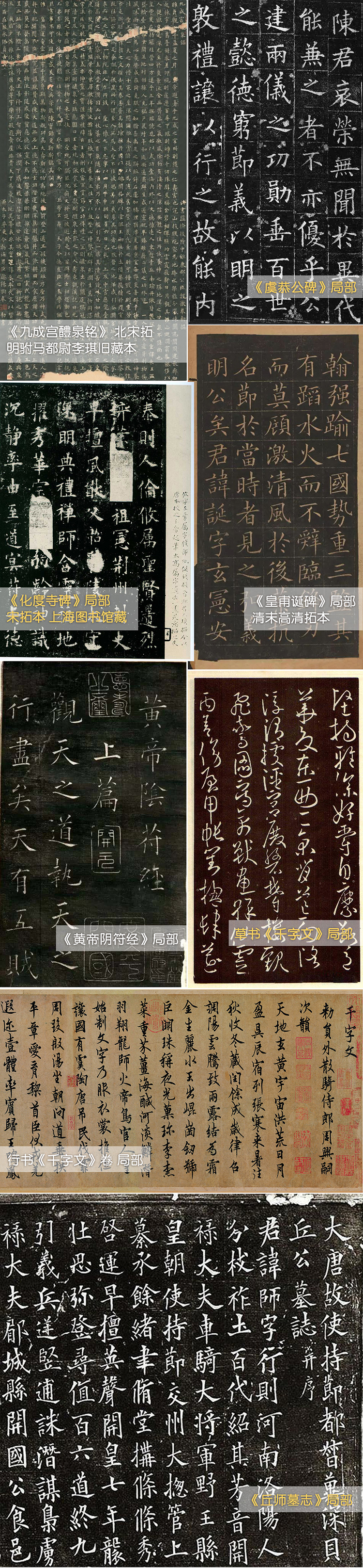 在書法方面,歐陽詢出名較早。起初仿效王羲之,后獨辟蹊徑,自成一家。他八體皆能,尤其是正楷骨氣勁峭,法度嚴整,以“歐體”之稱傳世,被宋《宣和書譜》譽為正楷“翰墨之冠”。 # 01