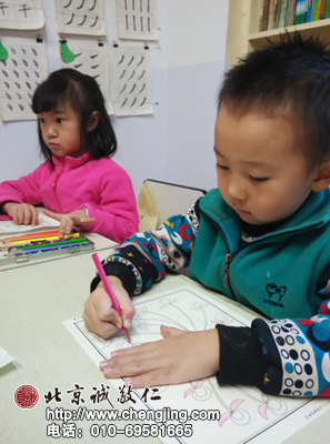 書法課就這樣一周輪一天的度過(guò),平時(shí)上幼兒園。也曾擔(dān)心孩子在兩種不同教育環(huán)境下,是否能適應(yīng),價(jià)值觀的不同教法,是否會(huì)在孩子那產(chǎn)生矛盾,所以我就來(lái)回的扯。一方面在家要孩子讀一小段經(jīng)書,寫一張硬筆描紅,或看《中華弟子規(guī)》或《中華德育故事》系列動(dòng)畫片,其它的書和動(dòng)畫片基本不讓看;另一方面,跑去和幼兒園老師溝通他們的教育方法,拿著德育故事跟他們講哪做錯(cuò)了哪錯(cuò)了,和主班老師辯論。
