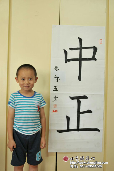 四歲時,在媽媽的明智抉擇下,我與媽媽一同到書法教室學(xué)習。 我參加的是全天班,從學(xué)習握筆開始,一點點寫大瓜子點, 小手越來越有力量,別看我個子不大,寫出的字還不小呢。
