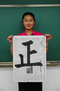 來自青海玉樹的同學,是一位憨厚的藏族學生,年僅十四歲。接受我們的采訪時,紅撲撲的臉上始終洋溢著動人而淳樸的笑容。為期三十多天的學習,朋措從書法的基本筆畫一直學習到書法字。在老師們的悉心教導下,在「永字八法」的科學引導下,朋措常常揮毫到深夜還戀戀不舍,忘我地愛上了書法,愛上了太極。更令人歡喜的是,在書法和太極的熏習中,朋措發現了學習的法寶——靜定,并高興地說:「靜定功夫能讓上課聽講專心,進步很快?!瓜嘈胚@個回答是最令老師欣慰的回報。而小院餐廳為大家提供的健康素食,令朋措更是如獲至寶地說,回家以后不想吃肉了。學習生活的收獲,讓小朋措學會了感恩和付出,無怪乎,餐廳里常常見到他穿梭的身影,擦桌子、擺椅子,忙得不亦樂乎,這份勞動的歡喜,也是學習班傳授給孩子和家長的法寶啊。