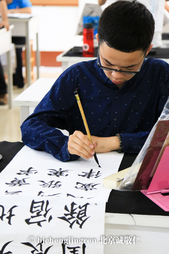 高溫持續的暑假,感謝您依然和孩子選擇走進書法的課堂。 從三歲的寶寶到爺爺奶奶級的老人家,或是認真專注、或是哭鼻子、耍小聰明。這個夏天注定有著數不清的精彩故事。未來的20天,我們盡力呈現夏令營精彩瞬間……… 各具特色的七個集體 ▼ 你好!夏令營 開營典禮:啟程 在中國文化的世界 體驗成長的無盡可能 ▲ 我們最小 可我們最守時 ▲ 穿上唐裝的小伙子們 氣質果然不一樣 ▲ 「正氣」裝 好精神 ▲ 那是我們的班主任 ▲ 好多熟悉的面孔 ▲ 伸出右手和虞老師約定,認真寫字,過好這20天! ▲ 我們才認識一天 已經打成一片 幼兒班(3-5歲)生活處處是學習 ▲ 學習用餐禮儀,我都可以自己來 少年班(6-10歲) 什么是守時? 為什么要珍惜糧食 洗漱事項 第一天學好規矩 以后書法才能學好 ▲ 戴老師講的故事特別有趣,我知道吃東西要少量多次,就不會浪費啦! ▲ 洗好的拖鞋 排排晾起來 蘭心班(10-13歲)很高興認識新朋友 ▲ 書法第一課 學會使用文房四寶 書寫禮儀 ▲ 落下第一個點 ▲ 掃除是舞蹈,手語帶我重新認識打掃的意義 蕙質班(13歲以上) 認真是我們班的主旋律 ▲ 為人妻為人母 是一項幸福的事業 ??不論人生走到那一段,不忘記經營心靈和理想, 那是最好的讓青春駐足的生活方式。 ▲ 看著大家的專注狀態 真的被感染了 ▲ 期待她們的作品 正氣班(基礎男班) 我能靜下來 接受新挑戰 志遠班(進階男班) 志在高遠 厚積薄發 ▲ 一幅優秀的作品背后 有你看不到的無數遍練習 ▲ 他們努力的樣子最珍貴 ▲ 書法是心 眼 手 腦的練習 觀察是突破的第一步 篆刻班 磨石:用一塊石頭試心 北京誠敬仁歡迎您的到來