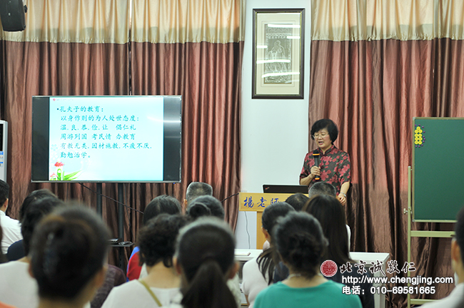 老師以現代家庭教育、家庭主婦所應肩負的責任為起點,結合父親從小對自己言傳身教的深刻體會,從楊氏家族《四知堂》家訓以及遠古周朝「三太」母儀天下的家教風范,漸次展開,循序漸進地引導大家如何重視家庭教育,如何在生活日常中幫助孩子培養(yǎng)「溫、良、恭、儉、讓」的傳統(tǒng)美德。并列舉古代《孟母三遷》,及自己多年的教育事例,著重強調了環(huán)境教育的力量。