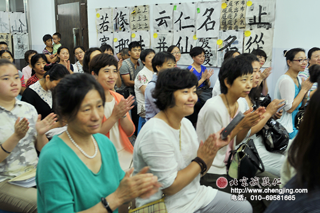 列舉王羲之、顏真卿等歷代書法世家的家規(guī)庭訓,并結合自己多年書法德藝教學的經驗,從習練書法能培養(yǎng)孩子的清靜心、專注力、以及從書法布局引伸到習書,如何提升做人的計劃性和圓融度等實際操作,闡釋了書法影響做人境界的深刻內涵。同時也分享了多位老人因練習書法描紅以及彩繪,而令身心得到安寧和健康的教學成果。以培養(yǎng)書法興趣愛好為例,強調了培養(yǎng)良正興趣愛好,對孩子啟蒙教育以及成人持家和養(yǎng)生處事的重要意義。