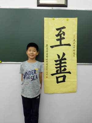 一轉眼,東東已經在「楊老師書法教室」學習書法十個月了,不光寫字有進步,性格也比以前安靜,謙虛,有耐心,待人也比以前友善了。德行的進步也是在楊老師書法教室學書法的收獲之一。今年暑假,楊老師書法教室在彰化路建立分部,剛好離我們家更近,上課也更便捷了。暑假鄭老師讓東東寫了兩幅作品「至善」和「有恒」,我想這也是老師對孩子的期望,希望東東能在書法道路上做好這兩點——精益求精,持之以恒。