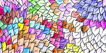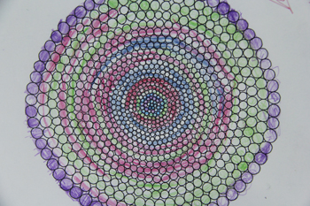 自閉癥學生魏同學:平時比較懶惰,剛開始一節(jié)課只能涂一元硬幣大小的區(qū)域,后來看到別的同學越涂越漂亮,也激發(fā)了他的興趣,現(xiàn)在速度明顯比過去快很多。