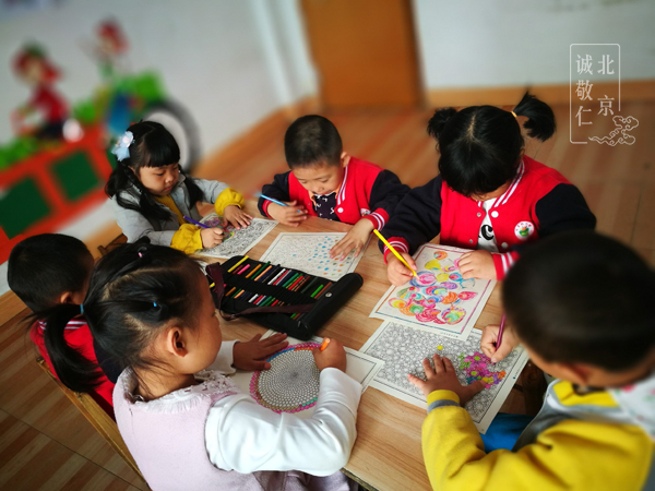 福建省武夷山市花朵幼兒園,在2016年開始應(yīng)用多元德藝教學(xué)法,開展經(jīng)典誦讀、定心描紅、快樂《彩繪》等特色教學(xué)。孩子們最大的改變是:通過彩繪、描紅,增長了定力,原來鬧哄哄的教室,也慢慢變得安靜。 不同年齡 不同的重點(diǎn) 幼兒班的孩子小,“不能特別要求”他們,孩子們拿著畫筆自由涂色,享受探知小手能力、感受色彩的過程,同時(shí)也練習(xí)握筆。 小班階段,讓孩子們嘗試涂色在圖形里,提高手控能力。中班階段,引導(dǎo)孩子們嘗試順著圖案的方向,線條從頭連貫到尾。 大班階段,鼓勵(lì)孩子們嘗試對(duì)畫面進(jìn)行改繪,加入自己的創(chuàng)意,同時(shí)注意畫面的整潔,培養(yǎng)他們保持活力又不失慎重的做事原則。