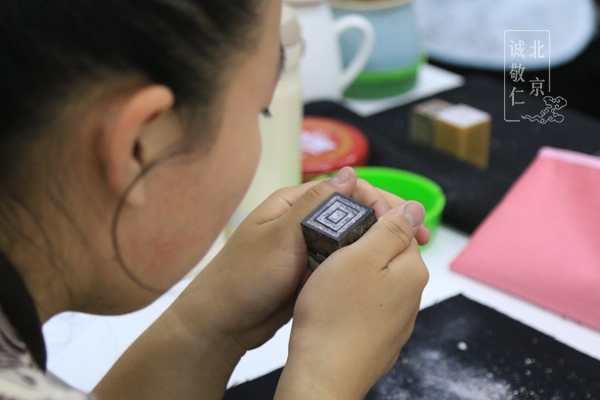 現(xiàn)場采用實(shí)物投影技術(shù),一邊示范一邊詳細(xì)講解,方便同學(xué)們直觀了解要領(lǐng),有疑問時(shí)可隨時(shí)抬頭觀看回放。 磨平印面:去除浮躁,磨平心性 學(xué)習(xí)步驟先從磨平印面開始,對于初學(xué)者來說,一方石頭六面都磨平也不是一件簡單的事情,在老師耐心指導(dǎo)與嚴(yán)格要求下,同學(xué)們耐住性子,在磨石中慢慢磨平了心性,對力道的掌控也有了精準(zhǔn)敏感度,在反復(fù)觀察印面是否方正的過程中也不斷提升著精準(zhǔn)的眼力。