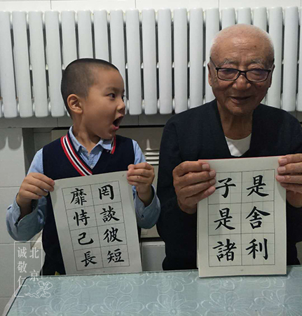 不熟悉的正體字爺爺都會查字典,小字寫在描好的字旁邊,并注上音。我說:“爺爺,你就描吧,描完了我再給您寄。”孩子到奶奶家也會和太爺爺一起描,一個人描幾個字,祖孫二人,其樂融融。