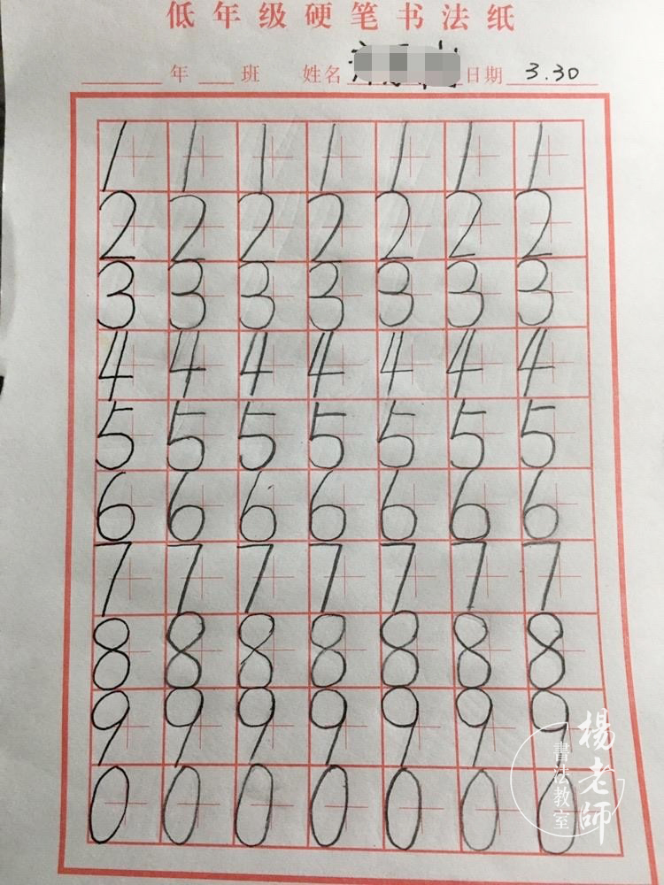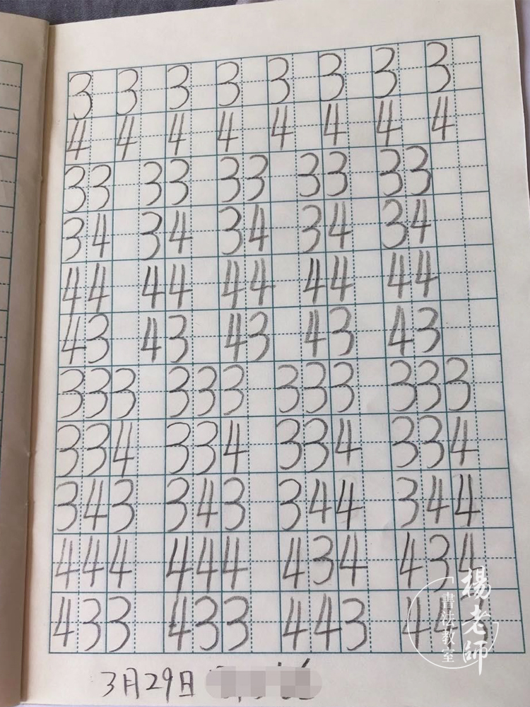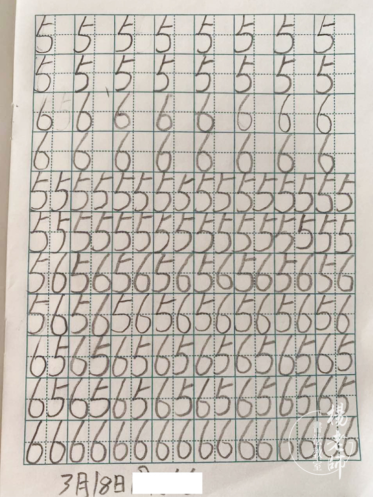 ………… ☆ … ☆ … ☆ ………… 第二期:數(shù)字練習(xí) 有了基本線條的練習(xí)為基礎(chǔ),就可以增加難度,數(shù)字對(duì)于孩子們來(lái)說(shuō)并不陌生,周?chē)沫h(huán)境處處都有數(shù)字的存在,但是孩子并不完全了解數(shù)字,數(shù)字的含義,數(shù)字的正確寫(xiě)法,不同的數(shù)字組合在一起又會(huì)發(fā)生什么不同的變化。本期的學(xué)習(xí)是帶孩子一起認(rèn)識(shí)和學(xué)習(xí)數(shù)字,在學(xué)習(xí)當(dāng)中,涉及到基本數(shù)字的認(rèn)識(shí)和正確的書(shū)寫(xiě)規(guī)范,數(shù)字組合(個(gè)位數(shù),十位數(shù),百位數(shù)),相同的數(shù)字,不同的排列方法就會(huì)組成不同的數(shù)字,如:1、2、3、11、22、33、12、21、13、31、23、32等等。這樣能鍛煉孩子們的思維能力,學(xué)會(huì)思考和觀察,兩個(gè)或者三個(gè)不同的數(shù)字能組合多少組的數(shù)組,并把他們寫(xiě)下來(lái)的同時(shí),還要會(huì)讀出來(lái),確認(rèn)是否能分清個(gè)位數(shù)、十位數(shù)、百位數(shù),在書(shū)寫(xiě)的過(guò)程中,孩子們其實(shí)就是在加強(qiáng)對(duì)數(shù)字的認(rèn)識(shí)和熟悉運(yùn)用正確的數(shù)字規(guī)范書(shū)寫(xiě)。 ∷∷ 第二期 部分作業(yè)打卡 ∷∷