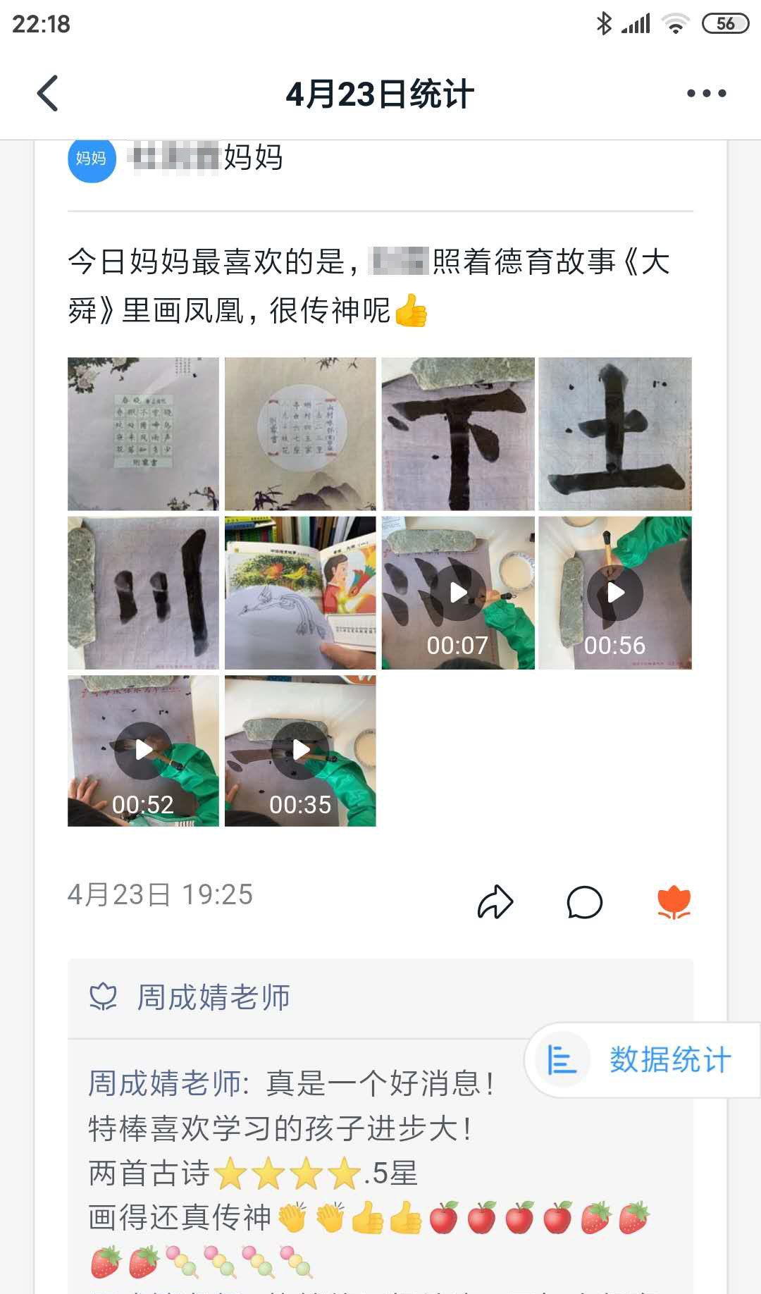 每天課程最后十分鐘,老師還會安排圓與曲線的基礎繪畫練習,目的在于,配合軟硬筆教學,提升書寫興趣與對色彩的感知,鍛煉學生手指的靈巧度,書寫時會更加流暢。 ![]() 每次的作業,總會帶給老師驚喜:您發現了嗎,里面還有右側點與方頭點組合的圖畫。內心豐富的二兜,將軟筆與硬筆在繪畫中交織,開啟了自己的一片天空。 ![]() 愛講故事的二兜,更是將平時拿來學習參照的故事書——《中華德育故事》中的圖畫,用來臨摹,一書多用,在興趣中發現美!繪出傳神的鳳凰! ![]() 回顧三期的線上學習,二兜明顯發生了較大的改變。 一路走來,讓我們感動的是,看到每位孩子成長進步的背后,都有每一位持之以恒,默默辛勤付出的爸爸媽媽們! 感恩您們的信任,讓老師們可以在親師配合中,陪伴孩子們一起成長!