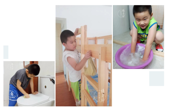 家毅在暑期夏令營,不僅學習了軟筆書法、硬筆書法,亦在生活能力、自律能力、拓展興趣愛好等方面,均有所獲。 1、鍛煉:家毅體型偏胖。每天早晨在老師的帶領下晨練,跑出一身汗。 2、晨讀:美文朗誦、古詩。如《母愛如歌》里那些優美又充滿感情的句子,小家毅甚至在晚上寫作業的時候,不經意就來那么一句。有一次在家吃飯,家毅的哥哥吃完飯,急匆匆地去洗碗。家毅在一旁看到哥哥碗里還有一些飯粒和菜,便說道:“鋤禾日當午,汗滴禾下土。誰知盤中餐,粒粒皆辛苦。老師說過,碗里的飯菜要吃得干干凈凈才可以去洗碗。” 3、唱歌:老師教的歌他都會唱。如《明日歌》:“明日復明日,明日何其多。我生待明日,萬事成蹉跎。”唱歌的同時,歌中對人生的警誡之意也隨之潛移默化于內心。 4、打掃衛生:古人云:習勞知感恩。家毅跟著老師每天學習做清潔,洗碗、整理床鋪、洗衣服、疊衣服、掃地、擦桌子、擺凳子等等。他越干越起勁,也從中體會到父母老師的辛勞,感恩之心油然而生。
