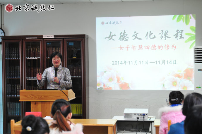 2014年11月11日至14日,北京誠敬仁舉辦德藝師資精品課之「女德文化課程」,由知名德育教育專家楊淑芬老師主講。