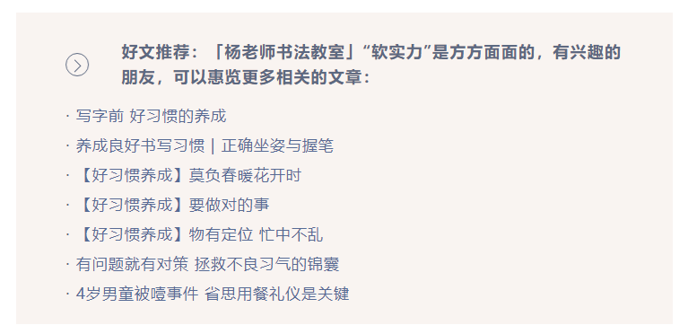悠悠姥姥提到的“軟實力”,正是「楊老師書法教室」多年踐行“七分德 三分藝”教學(xué)理念的真實寫照。