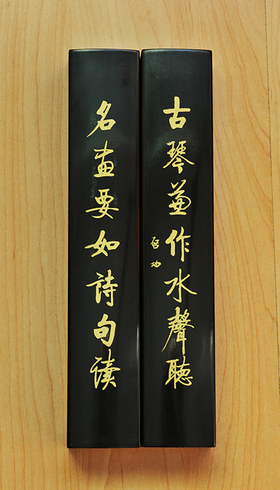 黑色木質長方條鎮尺沉穩厚重,材質精細。