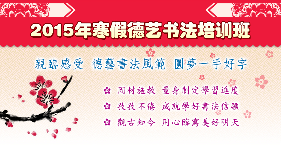 2015年寒假北京誠敬仁將繼續開辦寒假德藝書法培訓班。主講老師為北京誠敬仁著名書法教育家楊淑芬老師及其培養的優秀書法老師。