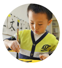 學員:進梁同學 時年5歲 自4歲半起定期到亞運村楊老師書法教室學習,后參加全天課程半年