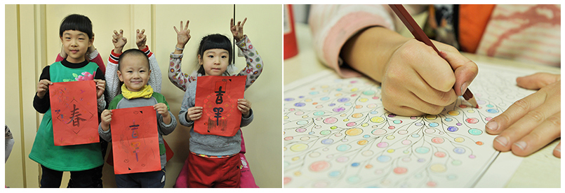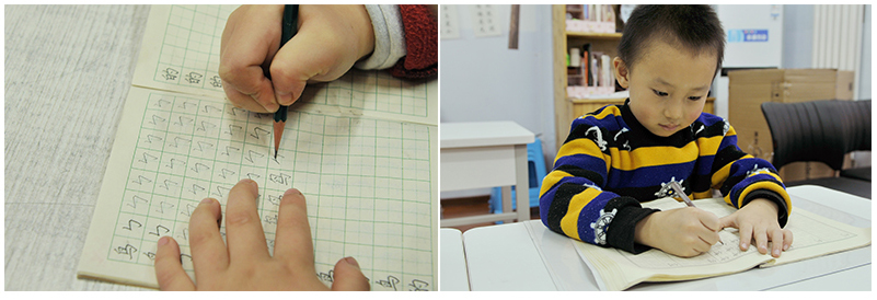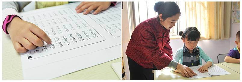 這里是小班教學,老師有耐心有方法,經(jīng)常鼓勵孩子,他就越學越喜歡學。彩繪、描紅和書法能讓他定下來,上課走神的現(xiàn)象少了。最大的變化是,他上幼兒園時從來都是自己一個人玩,來學習一段時間后心胸開闊了,居然主動提出要去找以前的同學玩,他爸爸可高興了!