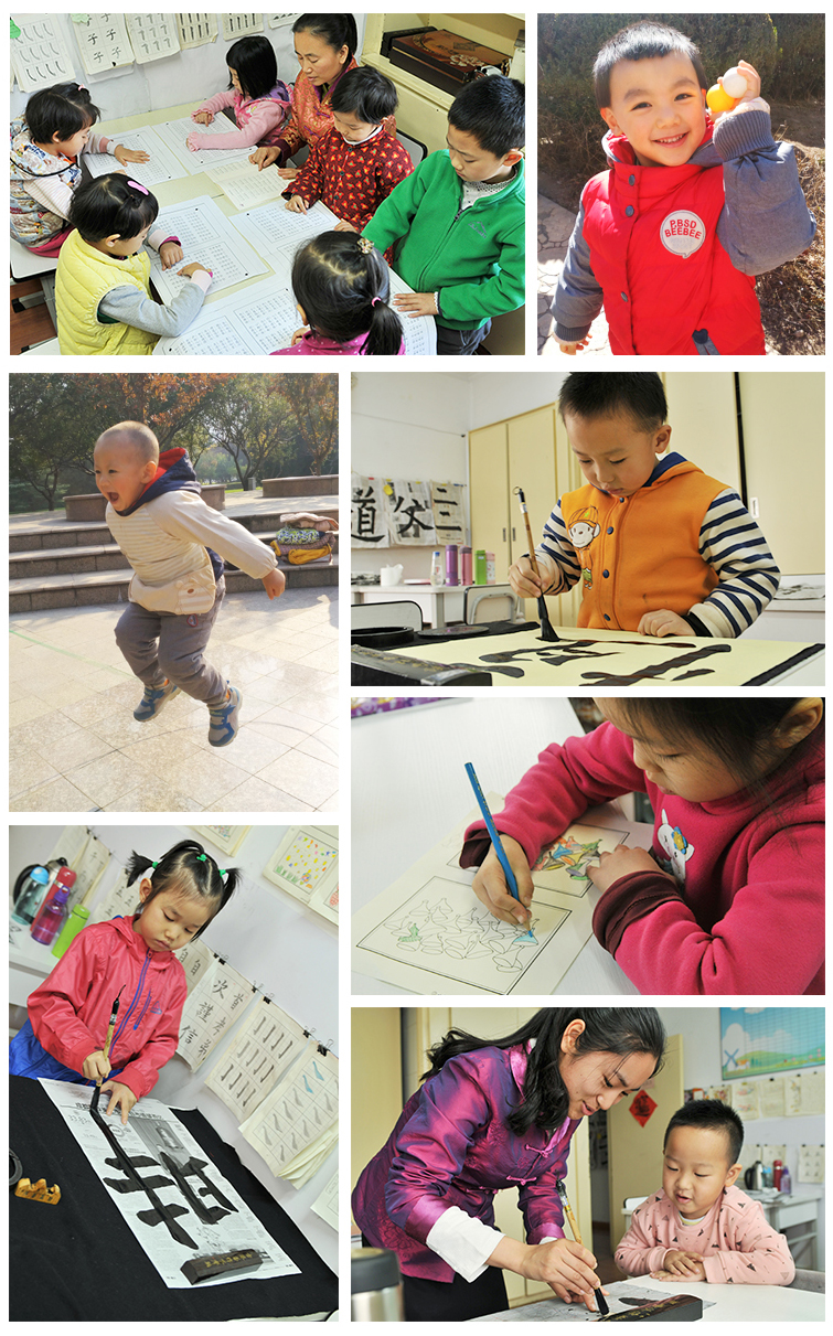 看德育動漫,讀《三字經(jīng)》,從小接觸中國文化,就連中午的游戲活動,老師們都把謙讓友愛植入其中,在她幼小的心里種下愛的種子。書法教室像世外桃源,老師們更是在用心教育下一代。看到老師們的好樣子,真正感受到孩子是有福氣的!