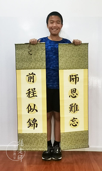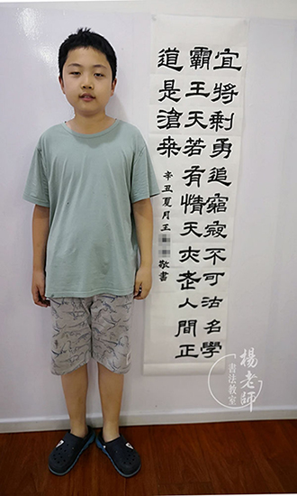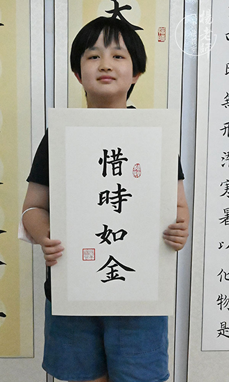 李同學是位幼兒園剛畢業還未步入小學的小朋友,學習軟筆書法時間還不長,但是已經寫第一幅作品了。讓我們為勤奮好學的他點贊!