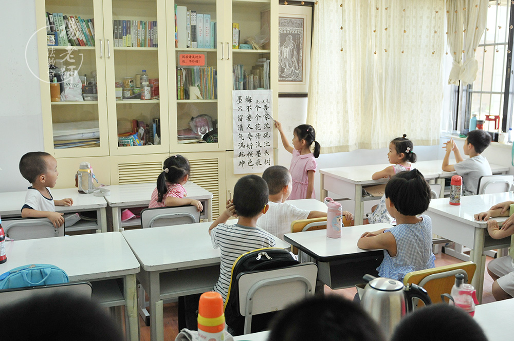丫丫性格靦腆、內(nèi)向,和幼兒園老師、小朋友的交流都很少。導致她不愛上幼兒園,每天早上都不太高興,到了大班還時常掉眼淚。而到書法教室后,這里的老師們耐心引導她,鍛煉她當司儀、大聲讀經(jīng)、整隊等。還建議我們多放手,不要事事照顧得太周到,孩子自己會的事情多了,信心增長,就會變得活潑勇敢。