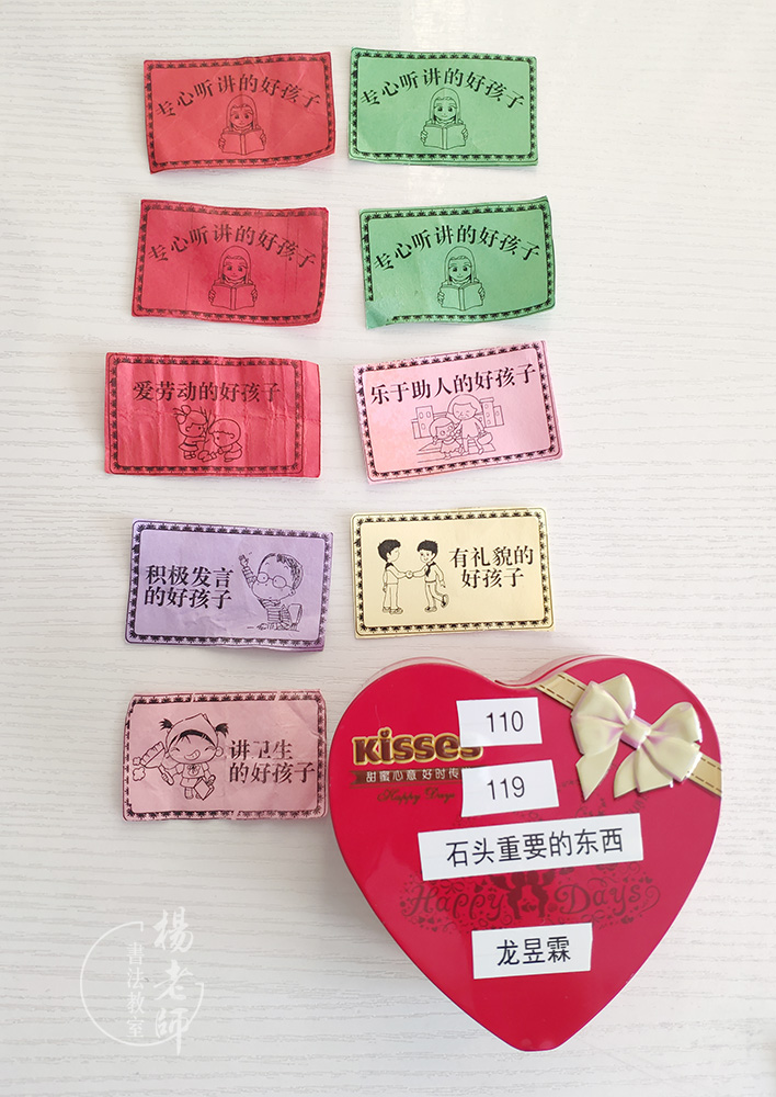 過了一個星期,小石頭又來到書法教室上課啦!這次,他帶來了更多的獎卡,給所有人更大的驚喜。