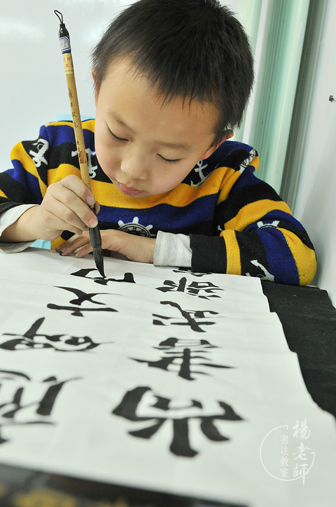 宸宸來「楊老師書法教室」時間比較久了。雖說他長了大高個,但卻比同齡孩子單純好動。人在少年班,但稍不留神就不見人影,原來他早已竄到其他教室或者辦公室、水房等地,弄出一些聲響巨大的動作,用足以嚇人一跳的音量與人說話。故爾,老師們安排讀經、描紅來增強他的自制力和定力。