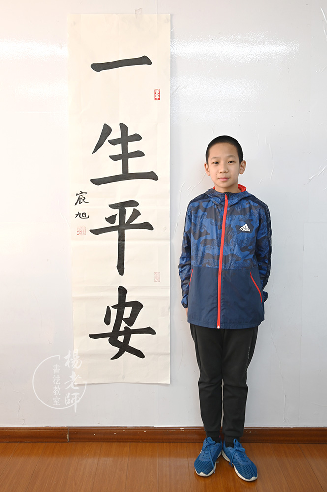 春秋輪轉,時光流逝,宸宸的身心漸漸靜下來、穩(wěn)下來。他現在可以很認真地寫兩個小時不下位。而他也迎來書寫生涯的第一次高光時刻:作品“一生平安”。