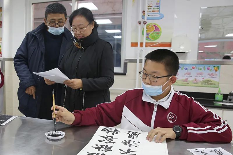 在學(xué)校也是如此,禹銘剛開(kāi)始學(xué)習(xí)書(shū)法不久,就參加“中華文化小大使”的活動(dòng),小學(xué)階段很長(zhǎng)時(shí)間任中隊(duì)委,后來(lái)任大隊(duì)委,非常受學(xué)校和老師們的重視和同學(xué)們尊重。升入中學(xué),禹銘很快就被吸收進(jìn)書(shū)法社團(tuán),其書(shū)法功底也受到學(xué)校老師們的肯定。