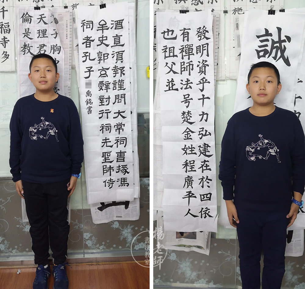 從小學(xué)三年級(jí)起跟著鄭老師學(xué)書(shū)法,到現(xiàn)在(讀初一)已經(jīng)快五年了。