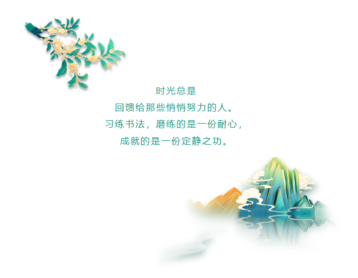 金秋時節(jié),清風送爽,那累累的果實宣告著辛勤付出的收獲。長期的堅持,砥礪身心,默默沉潛,只問耕耘不問收獲,而收獲自來。同學們不僅字寫得越來越漂亮,整個人的精氣神也更加光彩煥發(fā)。看著同學們開心的笑容和家長樂呵呵的表情,我們知道,他們亦如那累累的果實和沉甸甸的稻穗一樣,收獲滿滿。