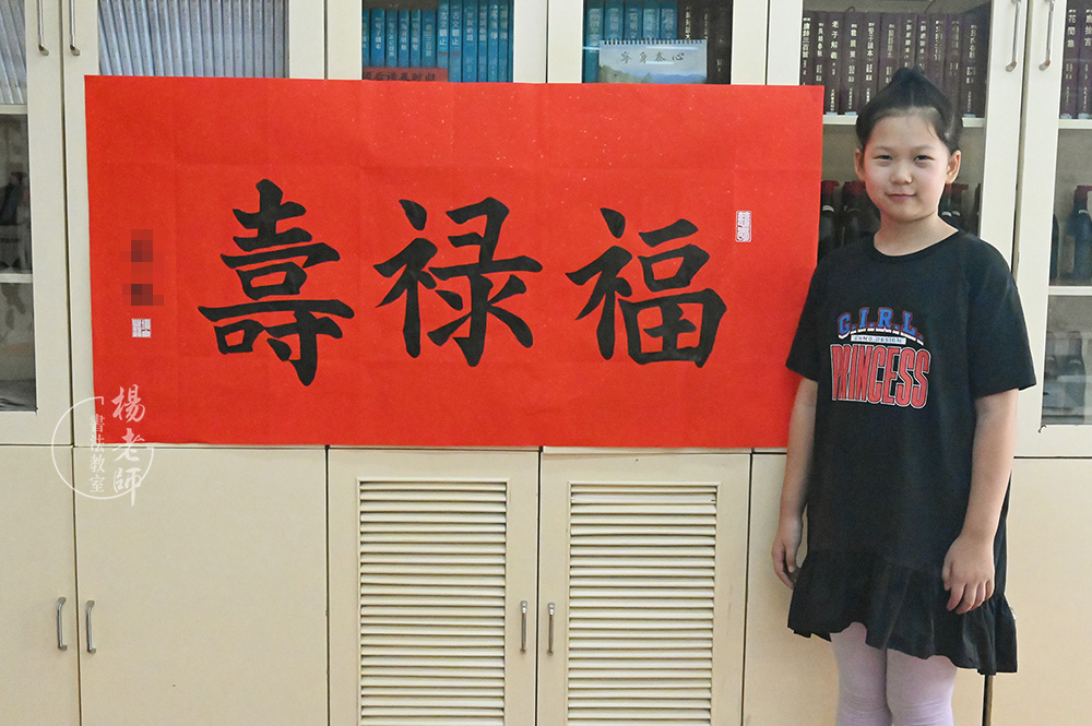 姥姥七十大壽,然寶為了給姥姥祝壽,特意寫了這幅作品。因為以前都是寫一個“福”字,這次想把“福祿壽”都湊齊了。為此專心習練兩個星期,終于寫出特別有精氣神的作品,獻給姥姥。
