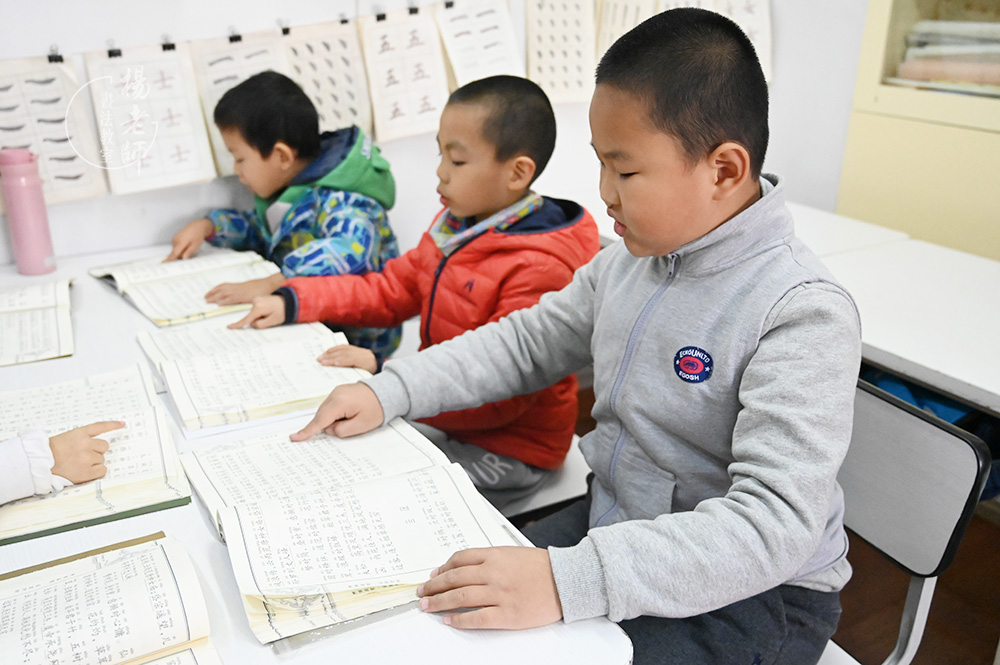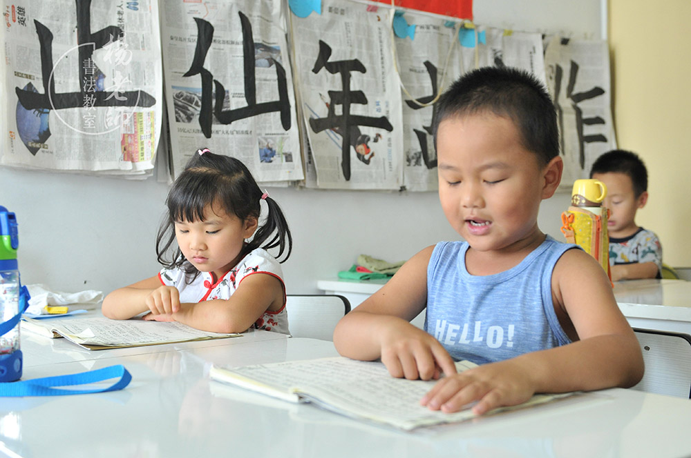 書法教室老師每天帶孩子們大聲朗讀經典,這讓孩子對讀書一點不畏懼,上了一年級很自然地會將語文和英語學過的課文自己朗讀并背誦下來。