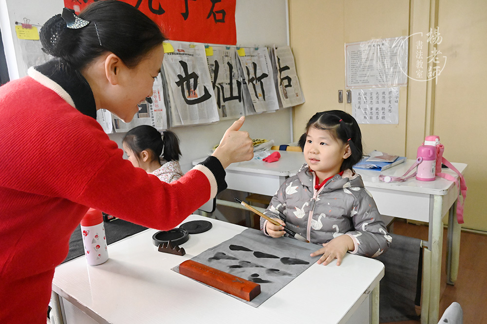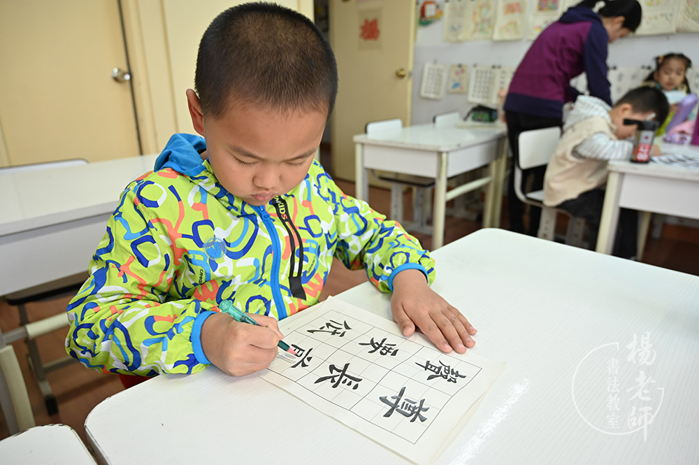 作為家長,我們感到非常慶幸,在孩子學齡前做了一個重要而正確的選擇:讓他在「楊老師書法教室」度過。雖然我們家離書法教室很遠,單程就需要一個多小時,每天早早起床,搭地鐵、乘公交,無論風霜雨雪,我們都和孩子一起堅持。但孩子從來沒有表示不愿去學習,即便在身體小有不舒服的情況下也能堅持,可見孩子對書法教室老師們和傳統文化藝術的喜愛。