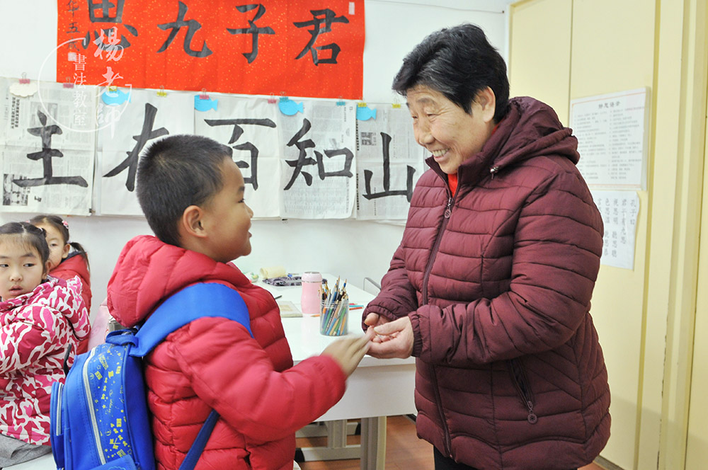 我們和家長每天都有及時的溝通與交流,當孩子們在書法教室有好的表現,如吃飯專心、對人很有禮貌、作業及時完成等,但是回到家中就不一樣,吃飯要喂,對長輩或父母無禮,作業磨蹭、拖拉等。那么老師就會根據每個孩子的具體情況,與家長做好溝通,每天詢問相關問題是否有所改善。當孩子在家中能逐漸改好,老師一定及時予以鼓勵、表揚。堅持一段時間,孩子就會跨越一個小的臺階。堅持更長一段時間,孩子就會取得更大的進步,直至養成良好的習慣。