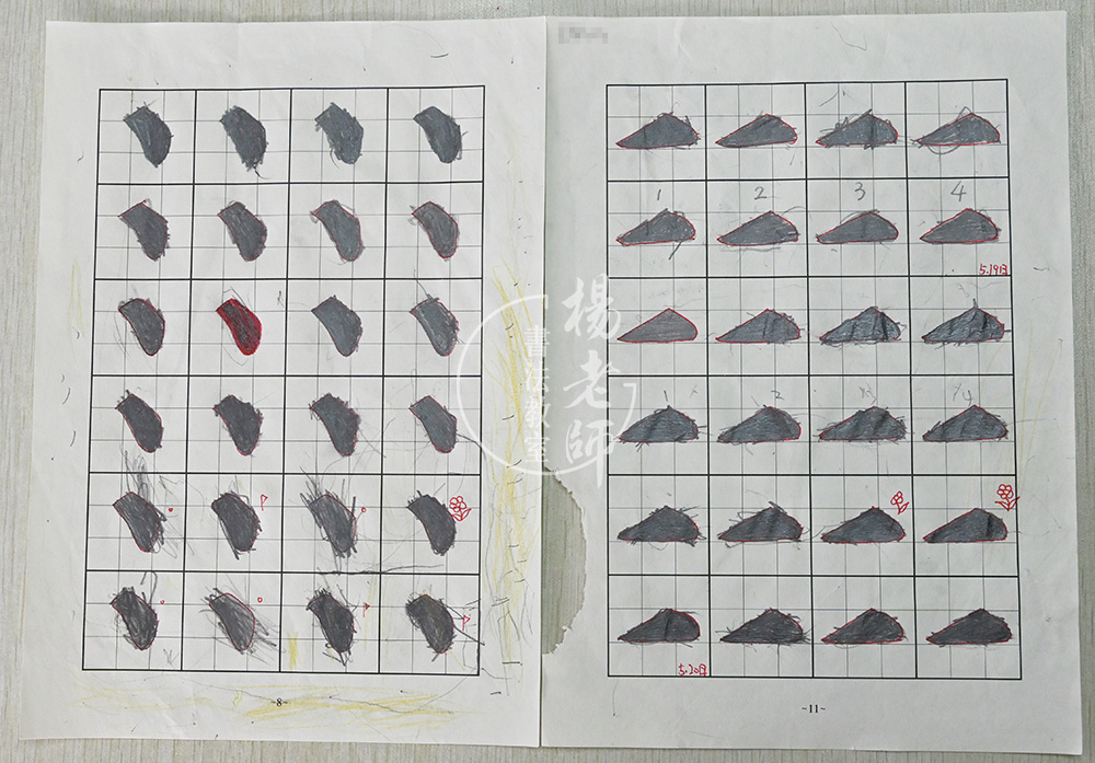這幅是十月份的描紅作業,線條已然很是均勻,沒有再描出邊框的情況出現,頁面干凈整潔無擦痕。