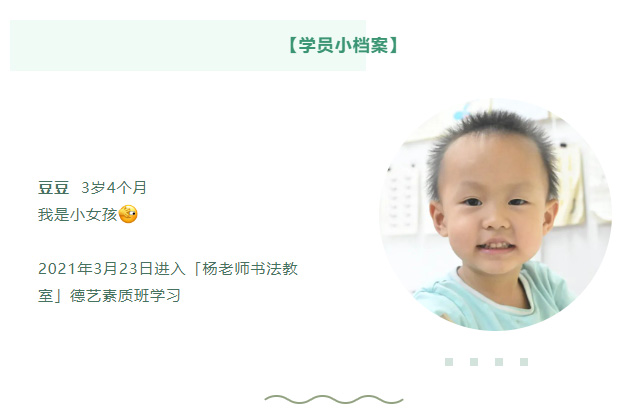 在這里,我想分享我們家寶貝豆豆(3歲4個月)在「楊老師書法教室」德藝素質(zhì)班學(xué)習(xí)七個多月的變化和感受,真心誠摯地推薦各位家長帶寶貝來這里學(xué)習(xí)和生活。