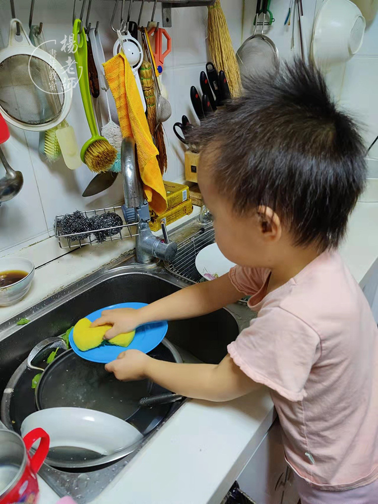在生活能力上,豆豆的進(jìn)步也很大。有一次我收拾孩子們夏天的衣服,孩子們也主動來幫忙疊衣服,豆豆疊得非常好,上衣和褲子都疊得很整齊,讓我很驚喜,因為我根本沒教她這些。這都?xì)w功于老師將生活的教育落實到了課堂學(xué)習(xí)中。早上起床,豆豆也會自己穿衣服疊被子,看著她專注認(rèn)真的樣子,“老母親”我可是非常欣慰呀!豆豆也非常喜歡給我?guī)兔?,搶著洗碗、揉面、掃地等等?/p>