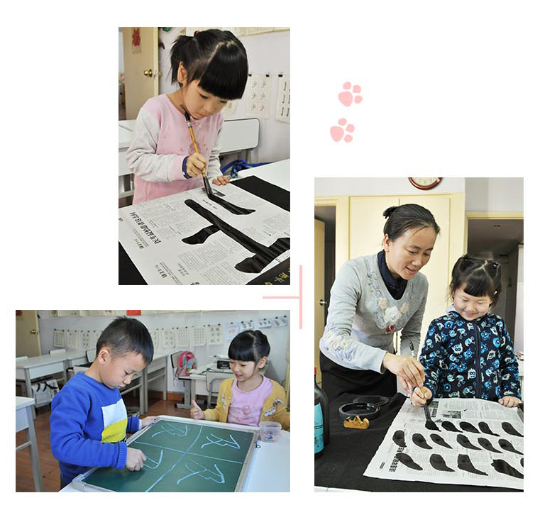 每天一早,來到書法教室的第一節(jié)課就是晨讀。孩子們的識字量從這里得到了充實(shí)。在語言表達(dá)上,也會將經(jīng)典運(yùn)用其中。對事物的正確辨別能力和獨(dú)立思考能力也有效提高。