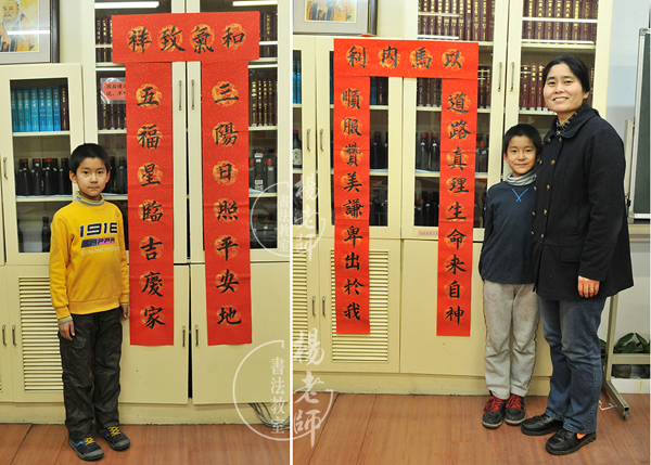 9月4日周一把兩幅字交給了班主任,后來與班主任通電話,才知道后面的事情。老師在全班表揚了兒子的毛筆字寫的真好,說把全班同學給震了,并鼓勵他說:老師雖然不會寫,但是覺得他的字寫的太好了,一定要堅持寫下去,并不一定為了謀生,陶冶自己情操也要寫下去,并告訴同學們有一個愛好并堅持下去是很幸福的事。老師還讓兒子給大家解釋一下「孔孟好學」,其他同學都頭一次看到、聽到這樣的中國漢字,太奇妙了,這是不是也算中國文化的傳承與傳播呢?