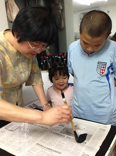 「楊老師書法教室」的孩子們從每天剛剛進門開始,就要學會主動與老師們問好,再向長輩感謝、再見。往往剛入學的孩子很不習慣行鞠躬禮,小小的腰背和頭總是很難彎下去,老師會耐心的一次又一次的反復演示指導,直到動作做規范了方可過關。因為有了老師這樣嚴謹而認真的態度,再到以后的要求中,孩子們就會多了一份認真對待。