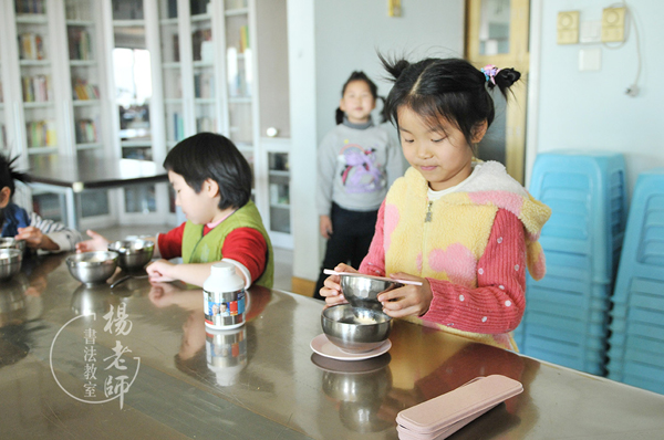 「楊老師書法教室」的老師們在日常生活中對孩子們的照顧是無微不至的,這種老婆心切的引導究竟要塑造什么樣的靈魂呢?細心觀察,在書法教室,會看到老師雖然時時處處在提點學生,但絕不是包辦一切,每天上課之前,我們都會集合孩子們到大教室行上課禮,召令大家集合的并不是扯著嗓子招呼的老師,而是主動承擔的小隊長,略作手勢,音量正常:全體集合——話音剛落,哪怕是正玩得不亦樂乎的小朋友,也會訓練有素地應和道:我來集合——井然有序,令人嘆為觀止。
