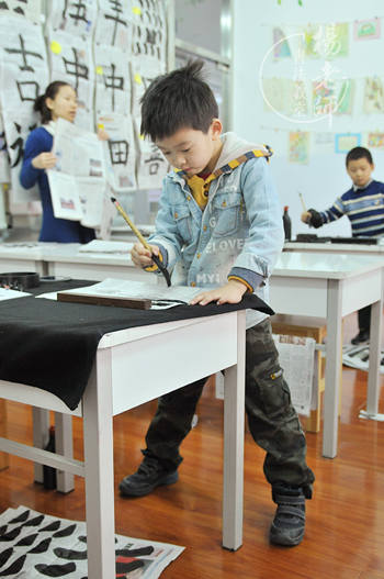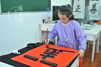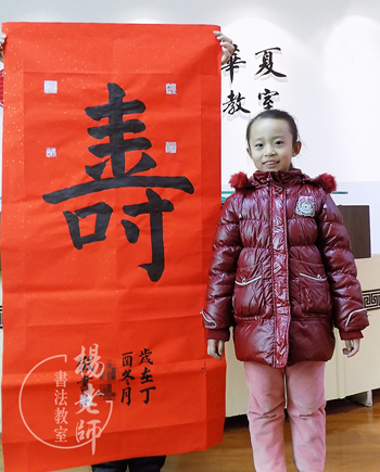 曦文,就像她的名字一樣充滿著晨曦的喜悅,當小姨提前接她下課時,曦文默默地收筆,準備洗筆,老師看到曦文筆法還有需要突破的地方就叫住曦文,讓她再寫一張,曦文開心地轉身,興奮地高呼:“耶——!”把在場的長輩都逗笑了,可見她多么熱愛書法啊!