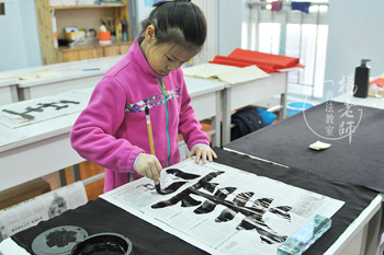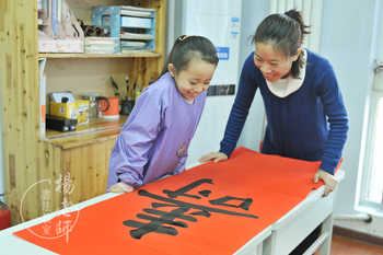 母親表示:學習書法,心態日趨平和,靜心修身養性,工作和生活更和諧了。女兒楊同學正為西城區藝術節準備作品。