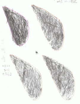 看他2017年11月19日這張描紅筆觸躁動,十萬火急。
