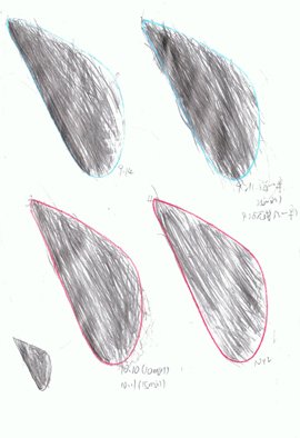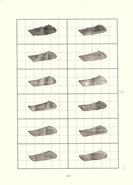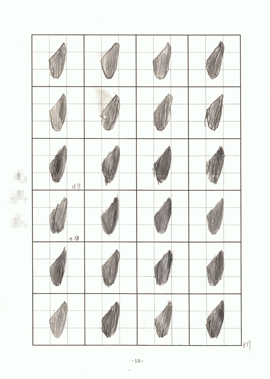 這是她前期描的「右側點」,細細觀察發現每一個「右側點」的完成時間間隔都很大,不難看出她不僅不能按時獨立完成作業,而且筆畫凌亂、躁動,好似車水馬龍,汽笛喇叭般的喧鬧。