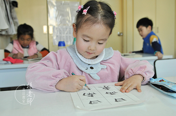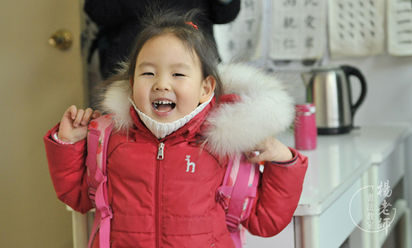 學習書法大概兩周后的一天下午,她放學回家一臉嚴肅地說:“媽媽,從明天起我再也不能哭了。”“為什么呢?”“夏老師說,如果我再‘下雨’,就不教您寫大字了。”我心中不禁贊嘆書法教室的老師們真有智慧,有了親師通力合作,效果很好,真心感恩「楊老師書法教室」的老師們。