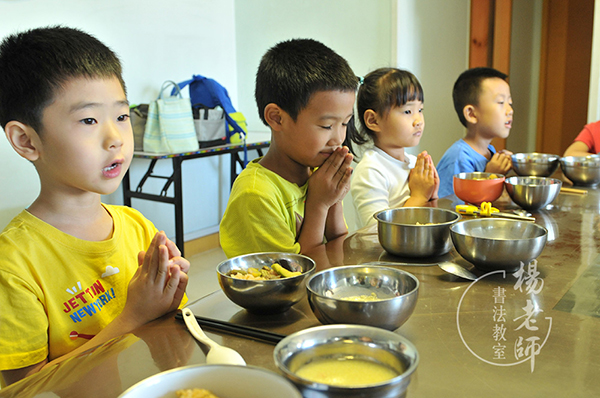 「楊老師書法教室」貫徹孔老夫子「食不言,寢不語」的教誨,悉心教導學子用餐時也應端身正坐,不可嬉笑玩鬧。